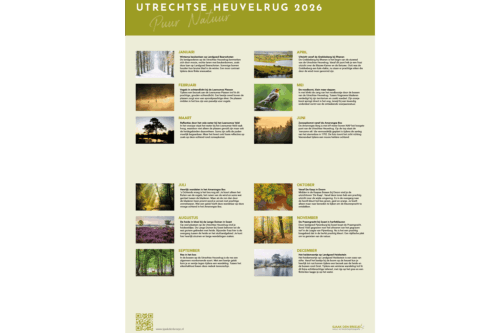 Kalender met foto’s van natuur op de Utrechtse Heuvelrug, lokaal gedrukt op 100% recycled papier.